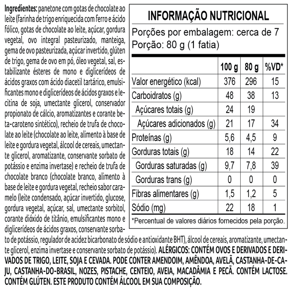 - Recheio de trufa de chocolate ao leite e trufa de chocolate branco