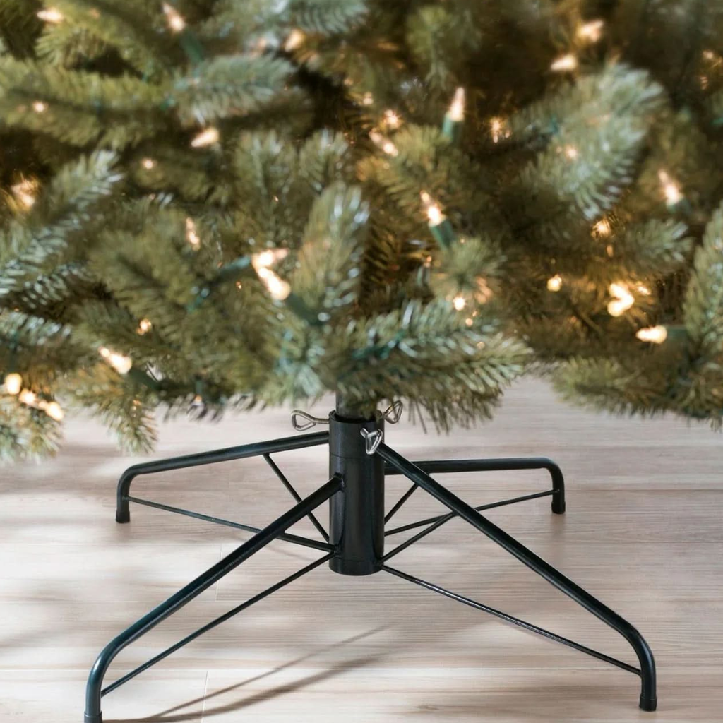 A Árvore Vermont White Spruce traz sofisticação e realismo incomparáveis, com galhos articulados, base metálica reforçada e micro LEDs embutidos de luz morna, criando um ambiente acolhedor e iluminado.