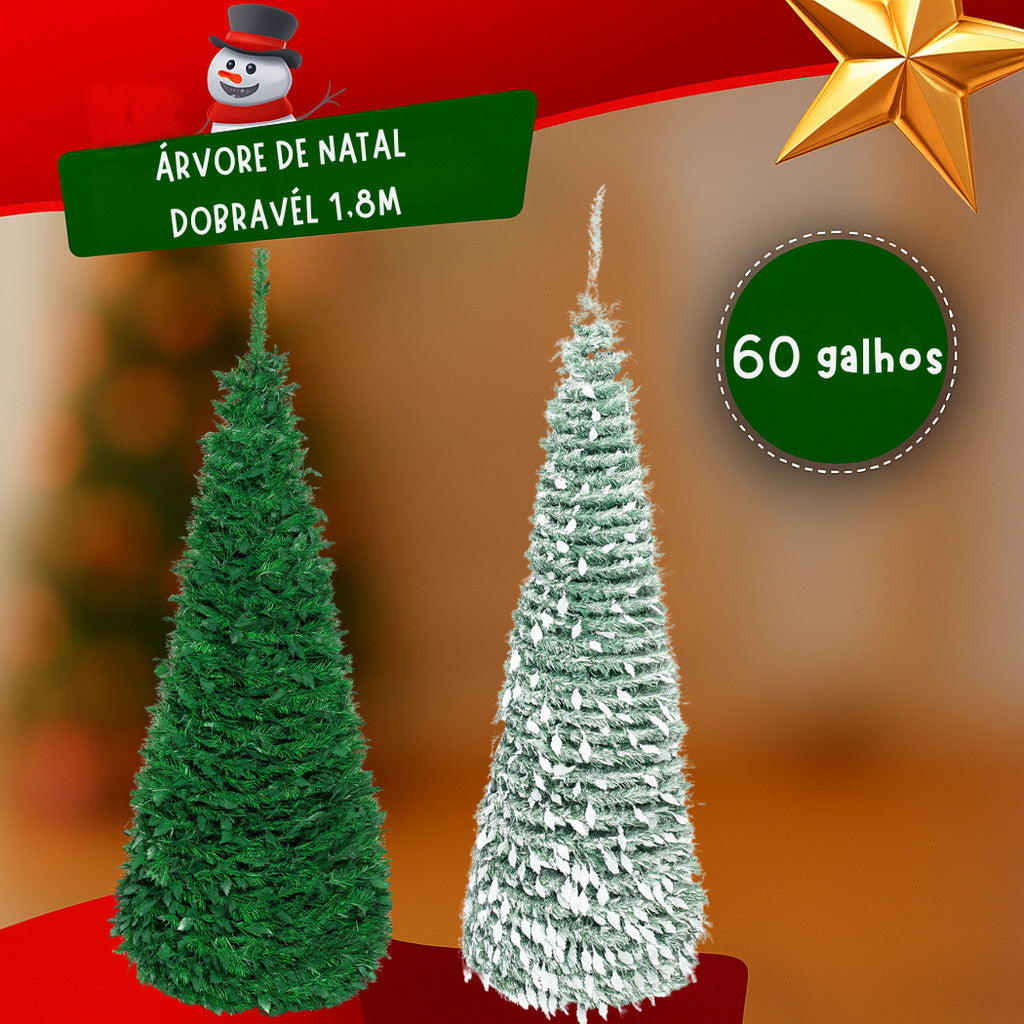 Árvore de Natal Dobrável 1,80 m – 60 Galhos Cheios e Estrutura Reforçada