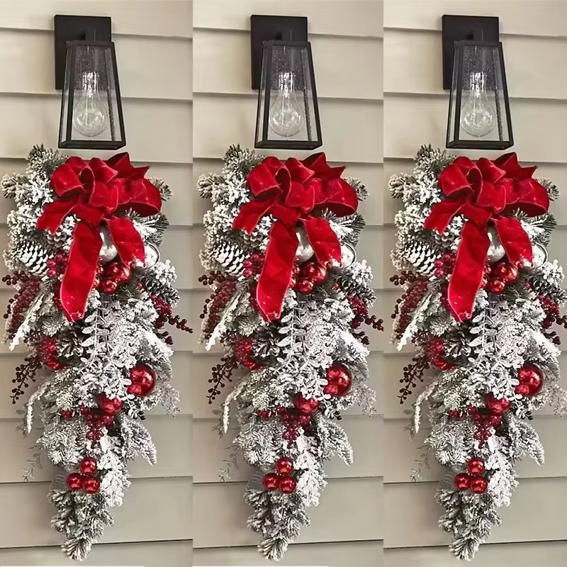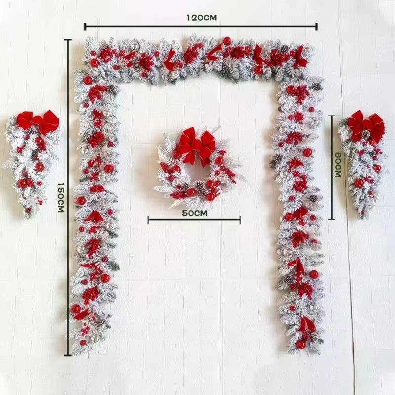 Produzido com galhos nevados de alta densidade, laços vermelhos clássicos, flores natalinas, frutos artificiais e detalhes brilhantes, o conjunto proporciona um efeito visual rico e harmonioso. A iluminação integrada (quando adicionada) destaca ainda mais a decoração durante a noite, garantindo um Natal inesquecível para sua família e visitantes.