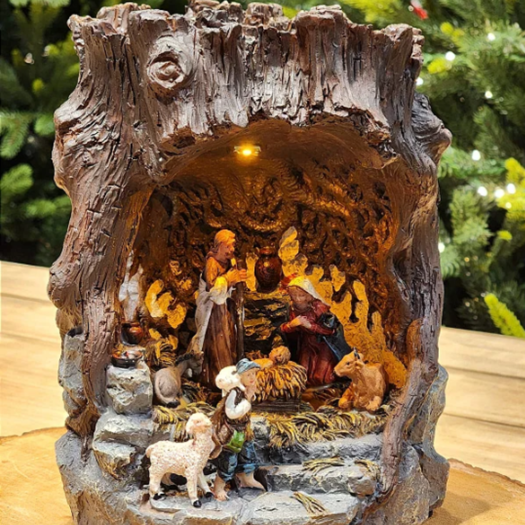 Presépio Decorativo em Resina – Iluminado com Cabo USB | 21 × 16,5 × 15,5 cm