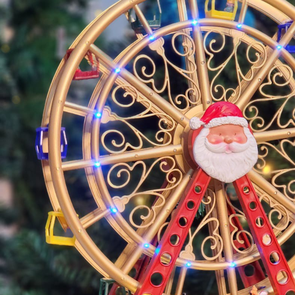 Produzido com atenção aos detalhes, este cenário reproduz uma charmosa vila natalina com sua roda gigante decorada, trazendo o clima acolhedor das festas de fim de ano para qualquer espaço.